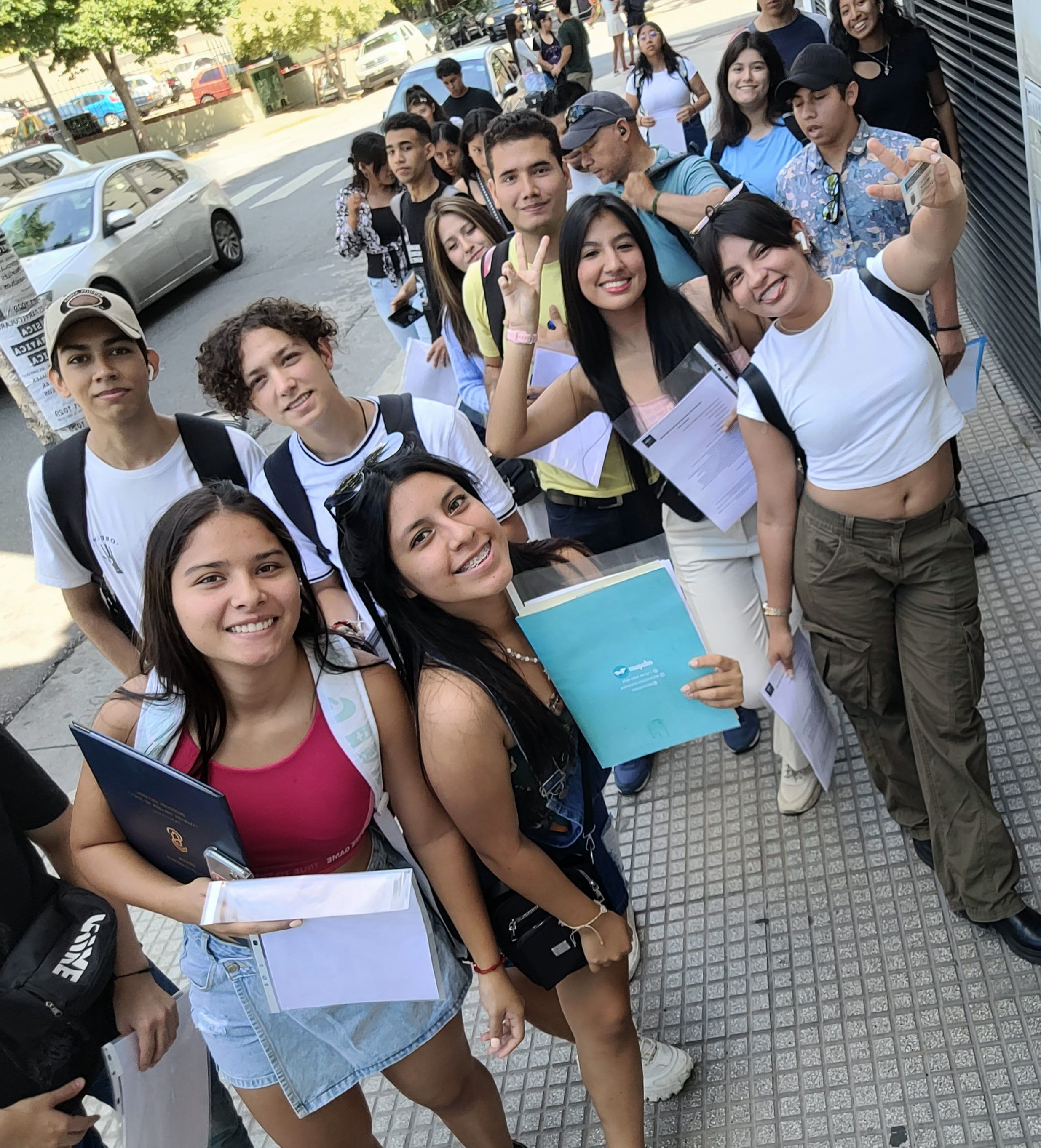 En la UBA, si bien tenés que realizar la presentación de documentación presencialmente y no admite presentación por terceros, te sugerimos hacerlo acompañado, ya que es un proceso lento y las filas suelen ser muy largas. Para garantizar que todo salga bien, nosotros acompañamos a los estudiantes de nuestra comunidad, revisamos con ellos que los documentos sean correctos y, una vez inscriptos, festejamos juntos en el parque frente de la uni. ¡Las caras de alegría lo dicen todo!